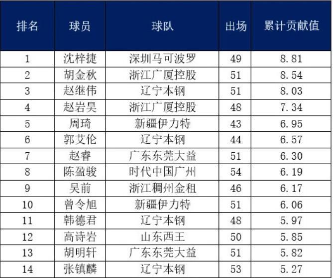 郭艾伦本赛季的表现优秀吗?郭艾伦的个人表现配得上MVP吗?虽然张镇麟、韩德君、赵继伟的表现出色,但是显然目前,郭艾伦才是这支球队的灵魂,除了个人数据之外,郭艾伦的的累计贡献值达到了6.57,排在联盟第六。