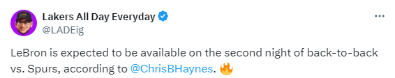 如今Haynes报道,詹姆斯预计在下一场对阵马刺的比赛中复出,湖人将在明天对阵马刺;赛季至今,詹姆斯累计缺席8场比赛,已经出战49场,场均上场34.9分钟,能够拿到24.8分7.2篮板7.8助攻1.3抢断;生涯总得分已经达到39868分,距离突破40000分仅仅只差132分。