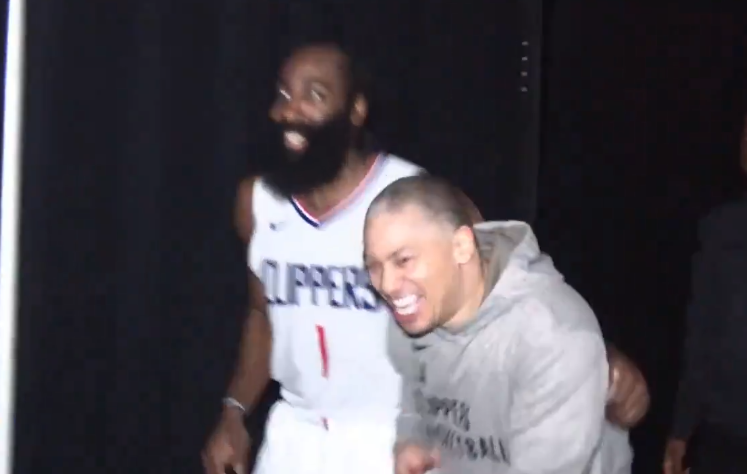 24直播网02月16日讯 ,快船客场15分逆转勇士赛后疯狂庆祝曝光,泰伦-卢不仅在球员通道中抨击裁判作弊,而且等候与快船众将击掌庆祝,还大笑熊抱哈登。