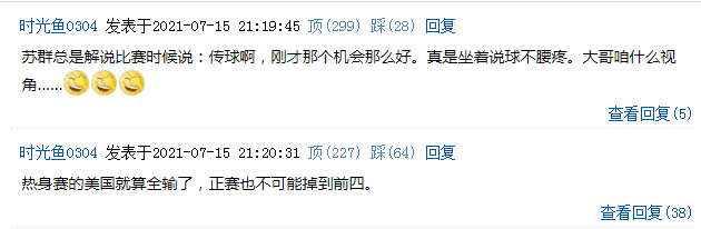 苏老师表示“美国队能进前四就算是个胜利,美国队今年的阵容本来就薄(弱),又有缺陷,如果今年真的能夺冠,那真是厉害。”,这一个观点也被网友反驳,觉得美国男篮在热身赛就算全部输掉,也不可能在奥运会正赛掉到前4,尽管前4也包括夺金,但是对于网友来说美国队只有夺金才是唯一选项吧,谁让美国男篮的实力是如此强大,但美国男篮这一次奥运会之旅确实充满了太多不确定因素,比尔和格兰特触发健康安全协议,热身赛被取消,奥运会要开打了还有核心球星在打NBA总决赛,可见美国男篮当前的夺金前景是岌岌可危。