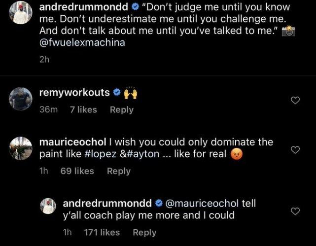 24直播网讯 北京时间7月7日,德拉蒙德在社媒上回复一个球迷的言论,明显对自己上赛季的出场时间感到不满。球迷写道:“我希望你能像洛佩斯和艾顿那样统治禁区,动点真格的。”庄神的回应是:“告诉你们教练,多给我点出场时间,我可以的。”