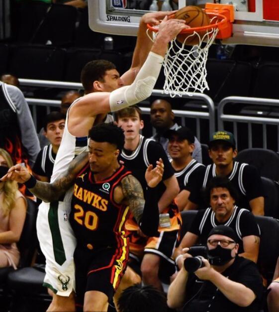 此外,没有了特雷杨在进攻端的威胁,霍乐迪可以把更多精力放在进攻当中,雄鹿也能放心派大洛佩斯和波蒂斯在场上打“大阵容”,这场比赛,大洛佩斯数次和霍乐迪等队友打出精彩的空切、空接暴扣配合,肆虐老鹰篮筐,他单场送出6记暴扣,轰下了33分7篮板2抢断4盖帽的统治级数据。