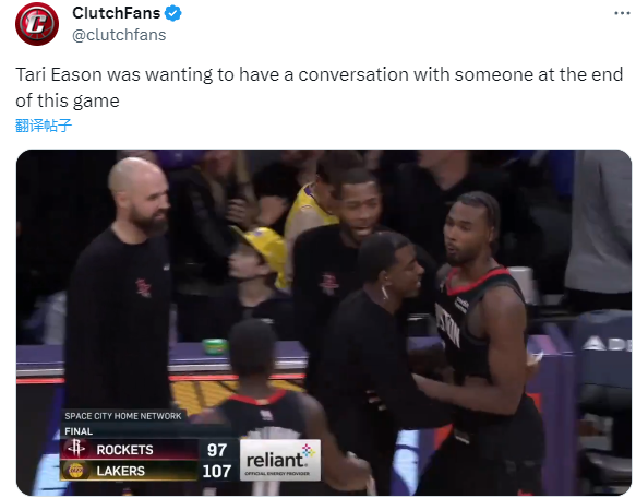 值得一提的是,湖人击败火箭赛后,伊森离开火箭替补席并且冲向湖人替补席,他好像在寻找某人,现场保安拦住了他,被保安强行带走;本场比赛,伊森替补上场19分钟拿到6分7篮板。