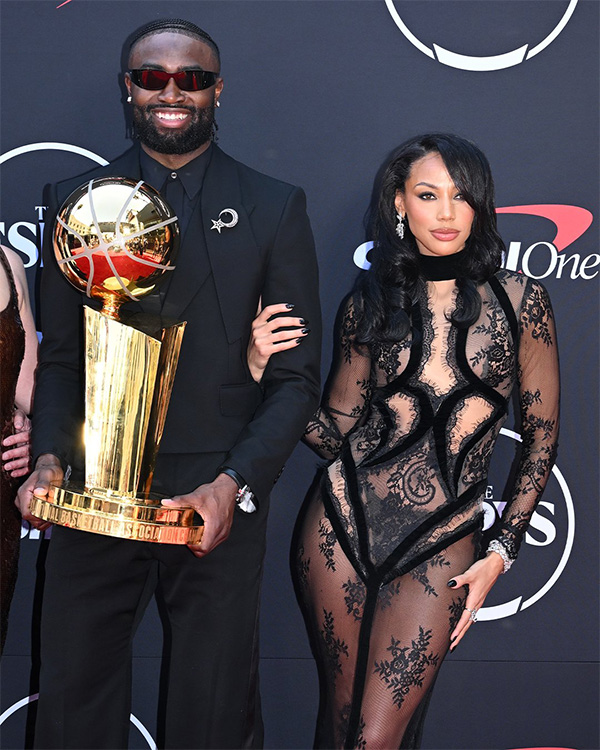 24直播网讯 北京时间7月12日,在ESPY颁奖日,新科FMVP杰伦-布朗携手小波特前女友走红毯,两人亲密合影疑似坐实恋情。