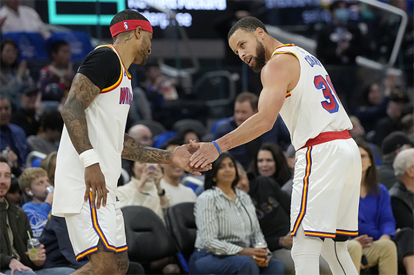 末节库兹马连得9分带队反超比分,8分55秒库里和普尔同时回到场上,库里连得4分,普尔突破轻松上篮,之后库里三分连续打铁,普尔命中不讲理三分并且做出闭嘴的手势;随后穆迪强硬上篮,小佩顿2+1助勇士稳住局面。