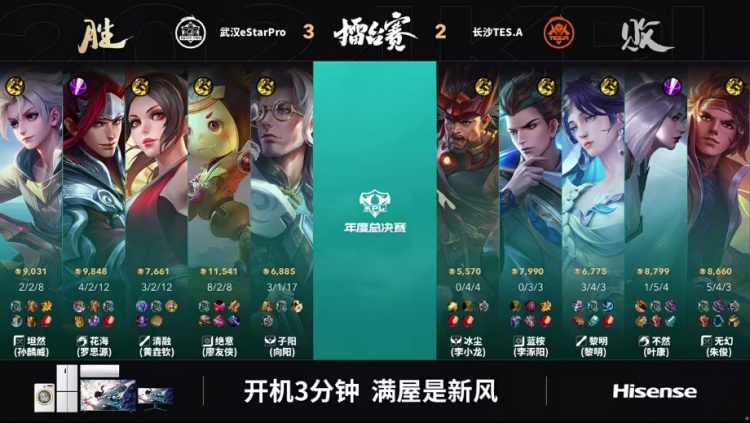 【12:40】eStar入侵红区,镜直接被击杀,随后海月也被eStar收下,虽然TES强行将韩信击杀但是自家被击杀四人,eStar直接带着兵线拿下胜利!