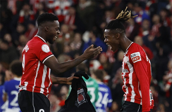 凭借主场的优势,毕尔巴鄂竞技展现了更好的状态,防守反击极为高效,在上半场就基本锁定了胜利。比赛第13分钟,尼科-威廉斯助攻伊尼亚基-威廉斯破门,毕尔巴鄂竞技1-0领先;比赛第42分钟,伊尼亚基-威廉斯助攻尼科-威廉斯破门,毕尔巴鄂竞技2-0领先,总比分3-0锁定胜局。下半场,比赛第61分钟,吉鲁泽塔破门,毕尔巴鄂竞技顺利以3-0领先,并且将比分保持到比赛结束,最终以两回合总比分4-0淘汰马竞。