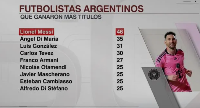 24直播网讯 迈阿密3-2击败哥伦布机员,夺得美职联常规赛冠军。TNT阿根廷晒出足坛冠军前十的球员: