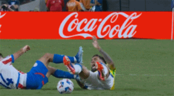 到了下半场,巴西队4-1领先的情况下,库巴斯是在和道格拉斯-路易斯倒地缠斗的时候,有倒地瞪踏报复的动作,裁判直接出示红牌,将巴拉圭队的库巴斯罚下,本场比赛出现红牌。