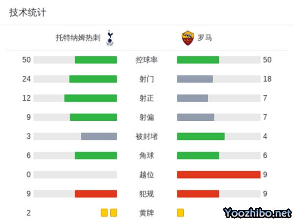 最终热刺主场2-2战平罗马,罗马各项赛事5场不胜。
