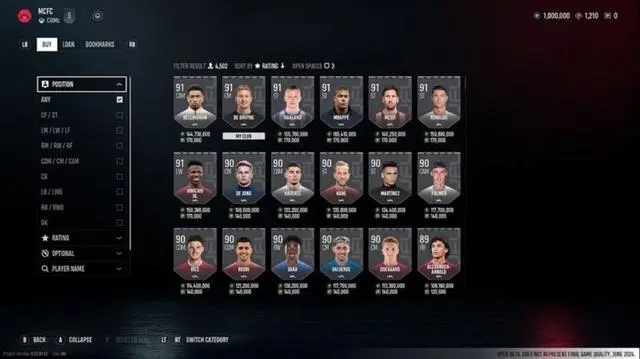 游戏中最高分的球员共有7位,分别是贝林厄姆、德布劳内、哈兰德、姆巴佩、梅西、C罗以及维尼修斯,7人均是91分。