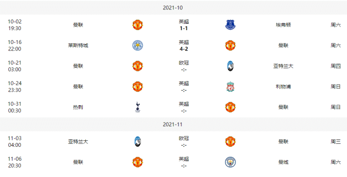 曼联的魔鬼赛程如下: