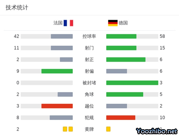 关键事件: 第1分钟,主裁判吹响开场哨,克罗斯传球维尔茨,维尔茨带球调整直接轰出世界波!法国门将桑巴毫无反应!开场仅仅7秒,德国1-0领先法国↓